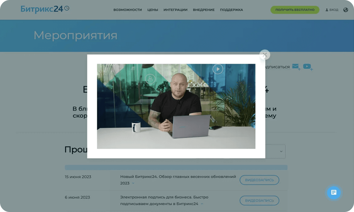 Смотрите вебинары на интересные для вас темы: CRM, совместная работа, проекты и задачи и другие.