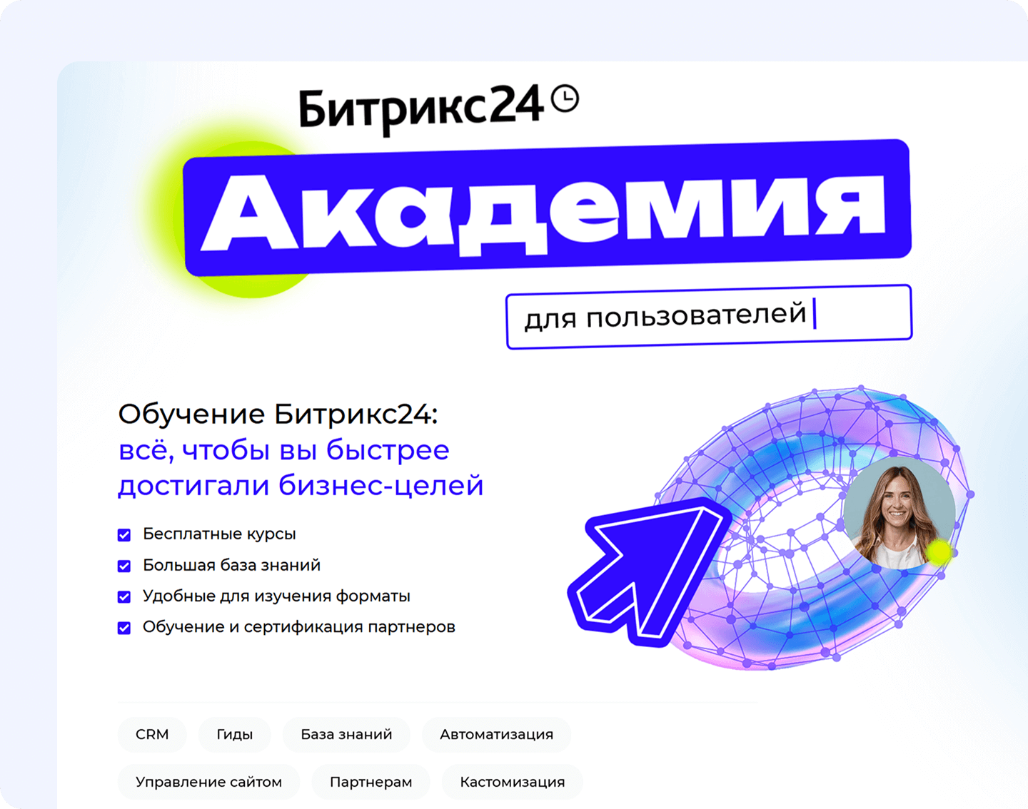 Статьи, мини-ролики, пошаговые инструкции с наглядными иллюстрациями — все это всегда под рукой внутри вашего Битрикс24.